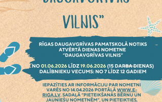 Rīgas Daugavgrīvas pamatskolā notiks atvērtā dienas nometne “Daugavgrīvas vilnis” no [...]
